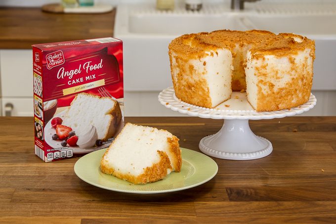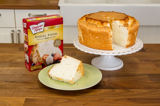 We loved this cake because it checked all our boxes. The cake was exceptionally light and fluffy like any good angel food cake should be. The cake itself was sweet and moist—a must for any cake. And, while this isn’t flavor-related, testers liked how this cake just looked a bit on the homemade side. If you were in a pinch, you could pass this off as a from-scratch cake. For us testers, that’s the hallmark of any good boxed mix.