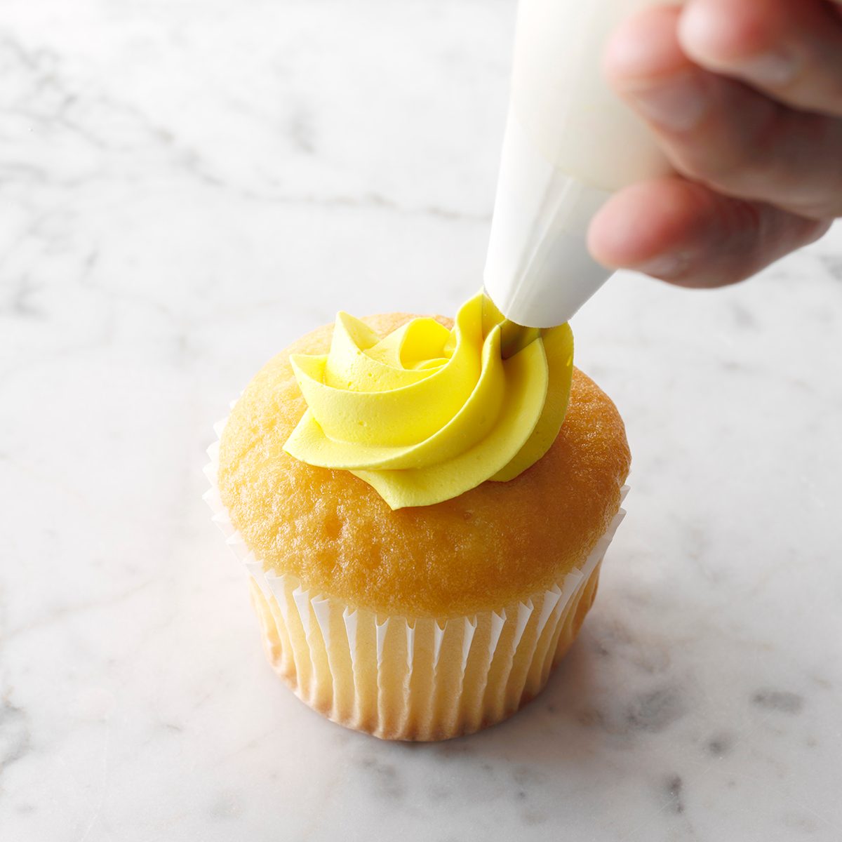 Piping cupcakes perfectly is a skill that can take a little practice. For beginners, we recommend starting with a simple, round pastry tip to add an elegant dollop of icing on each cupcake. Meanwhile, seasoned bakers can use a large star tip to add a fluted swirl to the top of their cupcakes or other creative designs. Regardless of your skill level, here are a few “tips” (pun intended) to set you up for piping success.