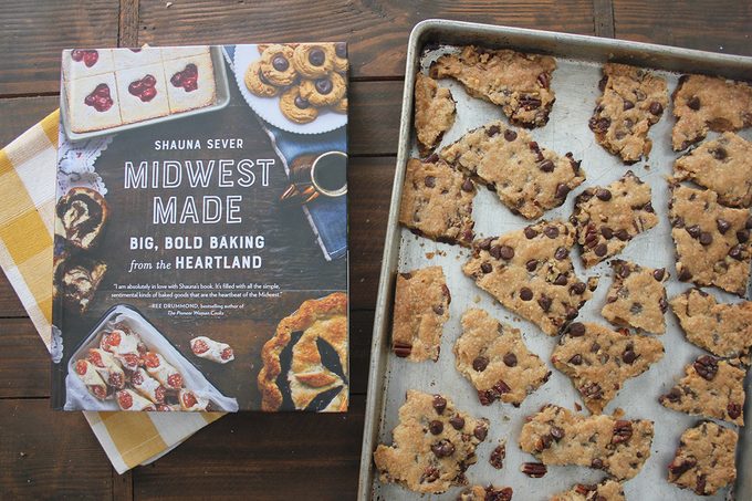 Because I’m such a fan, I’ve tried countless recipes trying to find one that suits me perfectly. These big and buttery cookies are the closest I’ve come, but I’m always open to new options. That’s why when I cracked open Midwest Made by Shauna Sever, I knew I had to try a new rendition of the classic chocolate chip cookie—one that’s not really a cookie at all: cookie brittle.