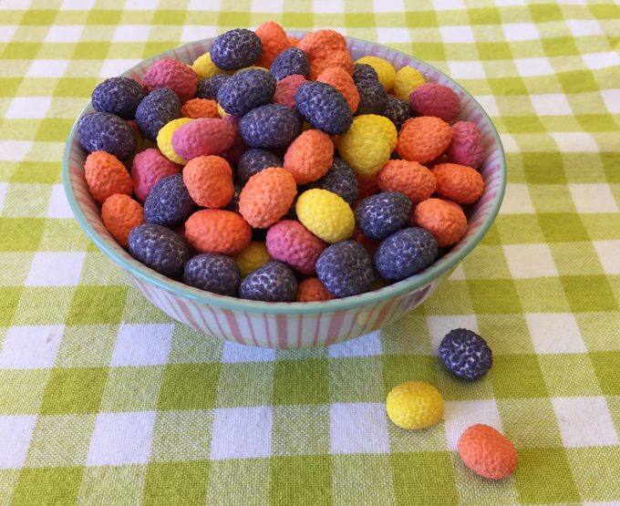 These jelly beans aren’t much to look at with that bumpy exterior, but make no mistake—they are the best jelly beans I’ve had. That dinosaur egg-looking shell is all Nerds candy coating—perfectly sugary sweet with a super satisfying crunch. The inside is chewy and packed with more fruit flavor. Combined, this checked so many boxes for me and my candy-loving pals: tart, sweet, chewy and crunchy. These are on all our shopping lists.