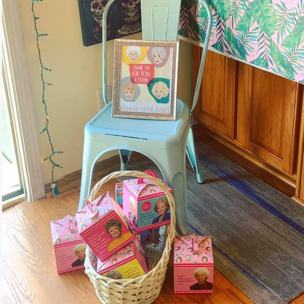 While a celebration as awesome as this won’t soon be forgotten, sending guests home with a memento or snack is a great way to say thank you for being a friend. Guests at Rae’s party took home extra sweets in Golden Girls treat boxes. You can also check out some of our favorite Golden Girls gifts for favor ideas.