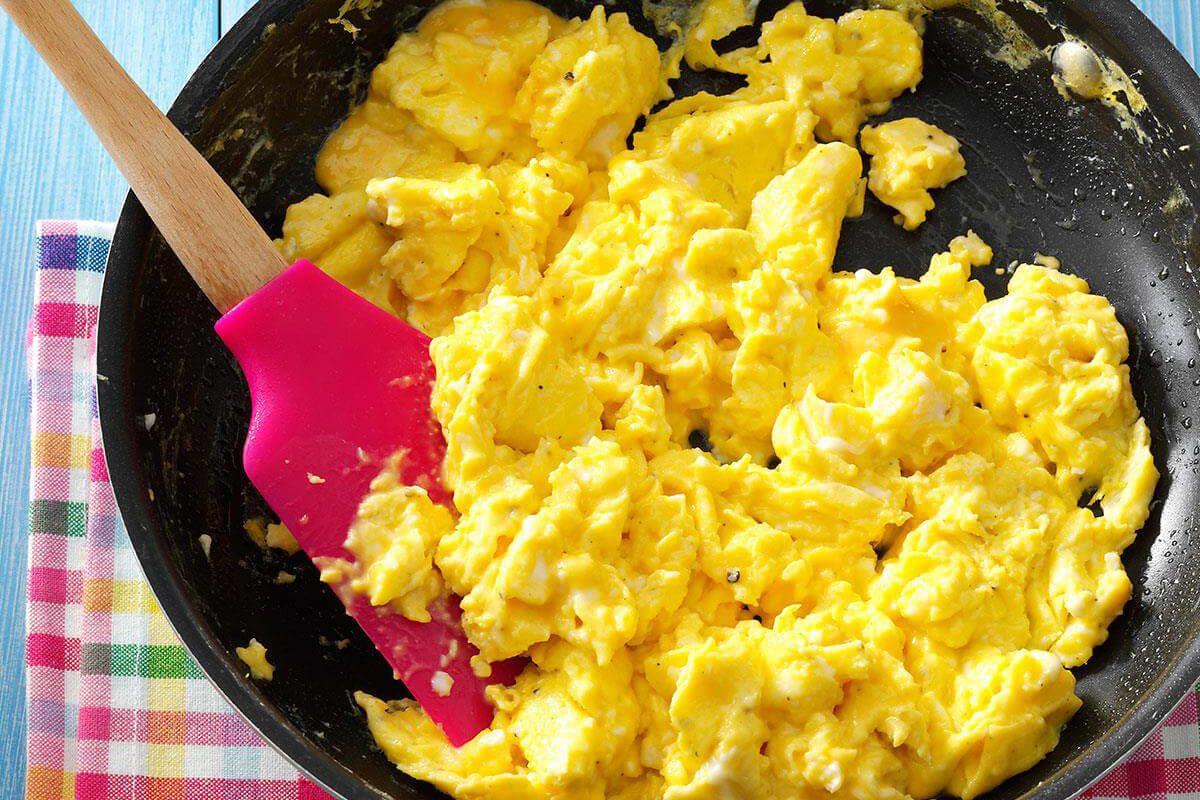 Test Kitchen Tip: For the creamiest results, stir a pat or two of soft butter into the eggs halfway through cooking.
