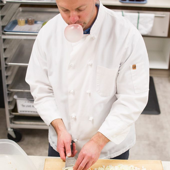 On this front, wild claims abound. Our Community Cooks and others suggested everything from chewing candy to lighting candles can help prevent the tears. Naturally, our Test Kitchen wanted to try them all. Follow along as Taste of Home‘s Test Cooks, Nick Iverson and Matt Hass, debunk the myths and ultimately settle on the best way to cut an onion without crying.