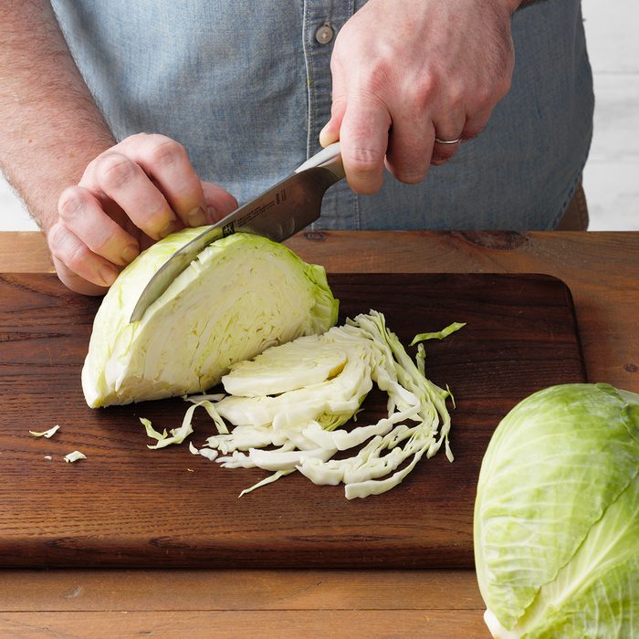Step 1: Core and slice cabbage