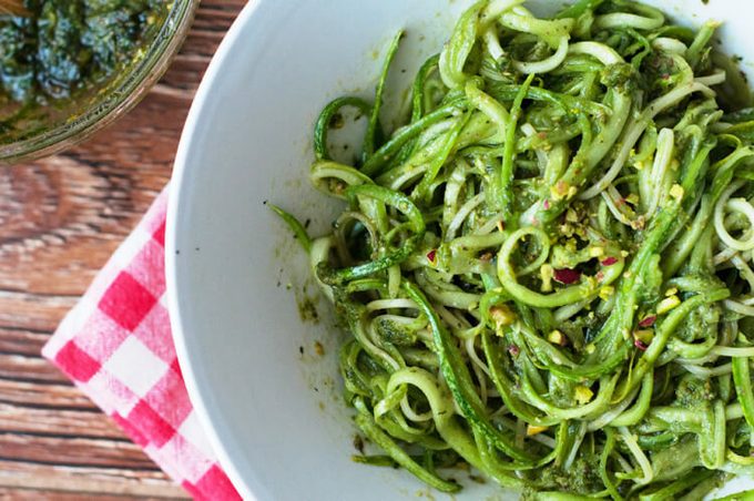 10. Raw Spiralized Zucchini Noodles with Tomatoes and Pesto