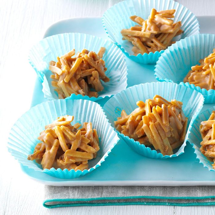 From the Recipe Creator: Tumbleweeds blow across the roads in some parts of Texas, and I think these cute stacks look like them. I've been making these sweets with my sister for years. —Karen Lemay, Seabrook, Texas