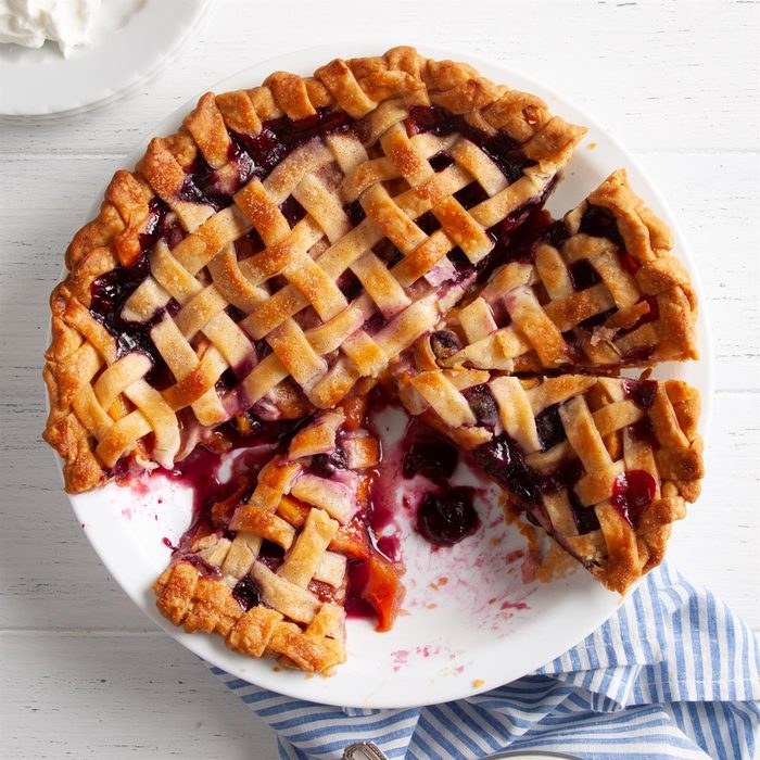 “What a flavor!” That’s what I hear most often when guests taste this peach blueberry pie. I invented it one day when I was short on peaches. —Sue Thumma, Shepherd, Michigan