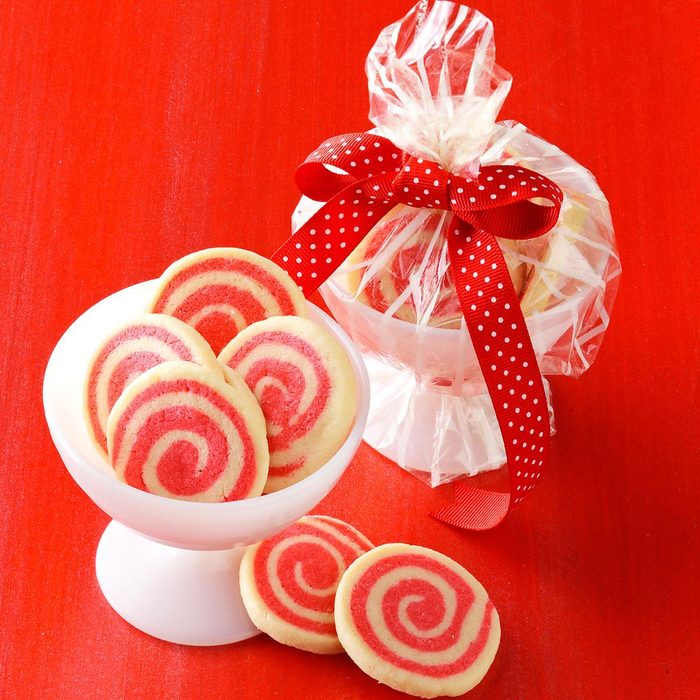 Put a spin on your holidays with these bright swirls! This recipe makes rich-tasting cookies with a minty flavor that sometimes surprises people. —Marcia Hostetter, Canton, New York