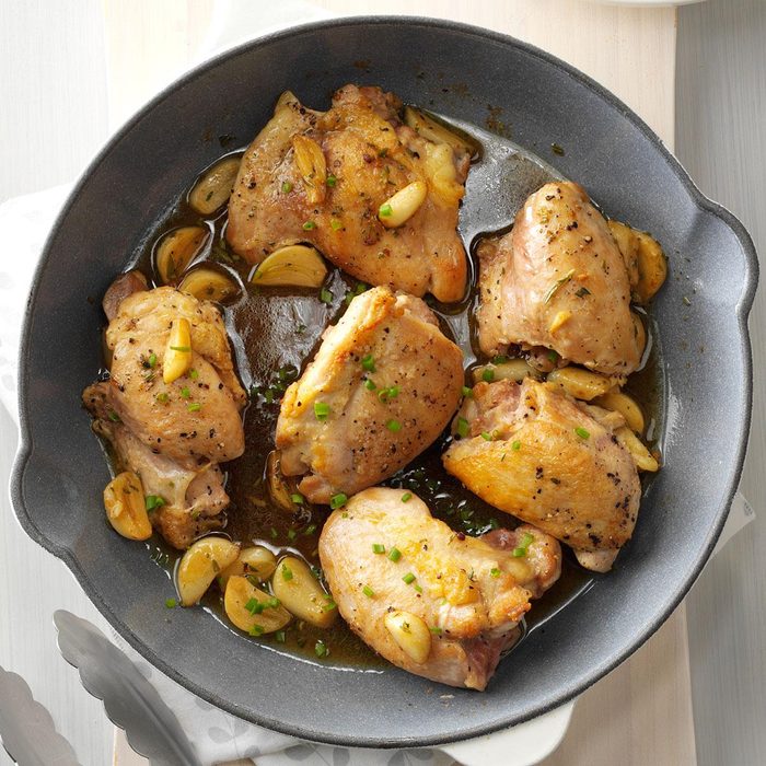 The key to this savory chicken is the combination of garlic, fresh rosemary and thyme. I like to serve it with mashed potatoes or crusty Italian bread. —Jan Valdez, Lombard, Illinois