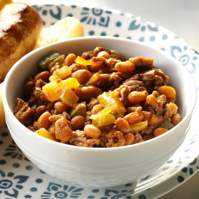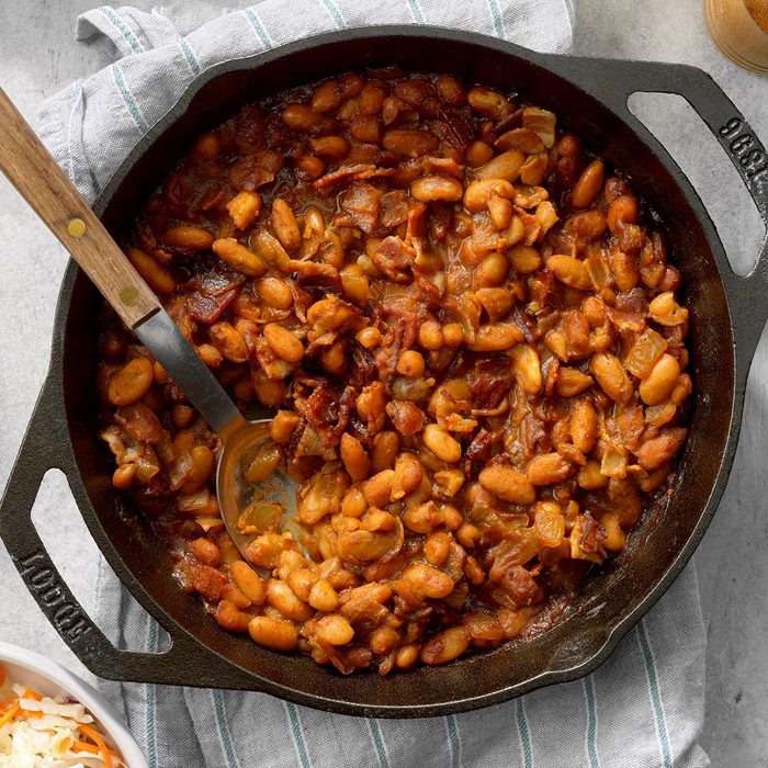 They’ll be standing in line for this saucy bean recipe, full of campfire flavor. A variation on colorful calico beans, it’ll make a delightful side dish with many of your favorite entrees. —Lynne German, Cumming, Georgia