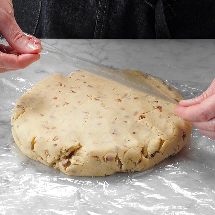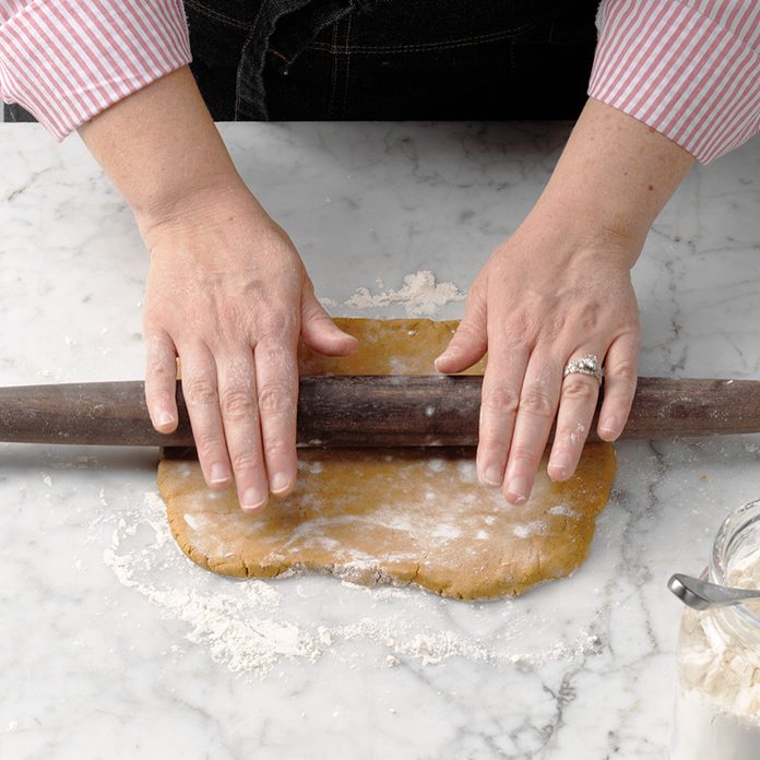 For easier handling, chill the cookie dough for 1 to 2 hours before rolling out. This is especially true if the dough was made with butter rather than shortening. Once chilled, lightly dust your work surface and rolling pin with flour to prevent sticking.