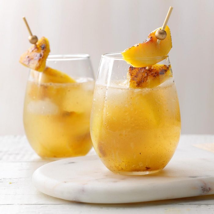From the Recipe Creator: Grill up fresh peaches and pineapple slathered in cinnamon butter and use them to make a refreshing summer sangria. I also like to add slices of grilled lemon and lime to drop in the glass for a citrusy boost of flavor. —Heather King, Frostburg, Maryland