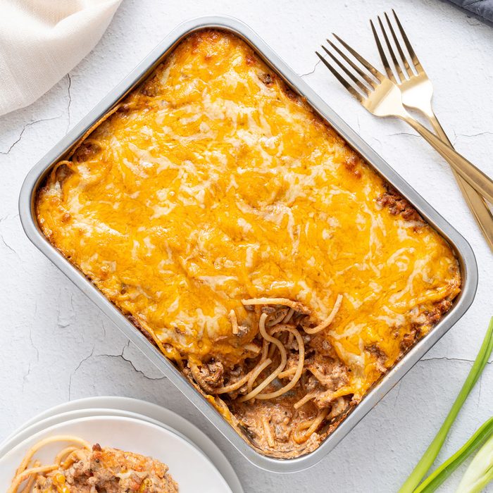 My family adores this spaghetti casserole. It’s old-timey comfort food. This is how to make baked spaghetti with cream cheese. —Patricia Lavell, Islamorada, Florida