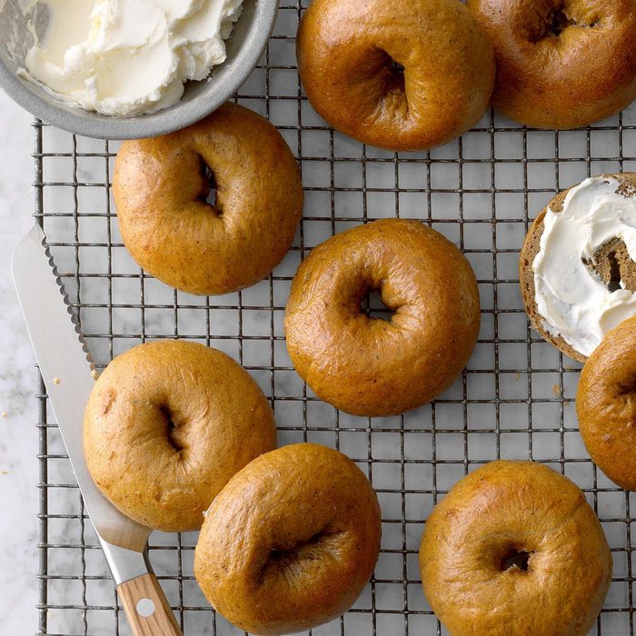 Enjoy pumpkin pie flavor with these classic bagels. For a change, adjust the spices to suit your taste buds. —Kristy Reeves, LeRoy, Kansas