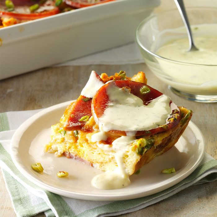 I've made this tasty egg dish for breakfast, brunch, even dinner as a side dish. This is not your run-of-the-mill strata. —Lynn Licata, Sylvania, Ohio