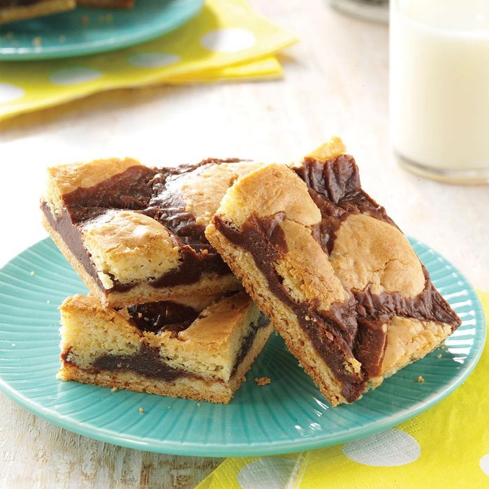 These cake mix brownies are a mash-up of two of my favorite desserts. A woman I worked with gave me a recipe for chocolate caramel brownies, and I have a recipe for yellow cake mix bars. I wondered what they would taste like together, so I tried it—and I’ve been making them ever since! —Staci Mergenthal, Verdi, Minnesota