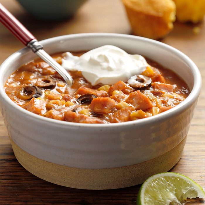 From the Recipe Creator: "Island vacation in a bowl” might be the best way to describe this hearty soup. A splash of lime juice and a hint of jerk seasoning add tropical taste. —Mary Lou Timpson, Colorado City, Arizona