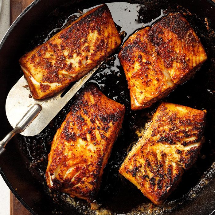 Try serving this spicy halibut recipe with garlic mashed potatoes, hot, crusty bread and a crisp salad to lure in your crew. After trying a few halibut recipes, this one is my family's favorite. —Brenda Williams, Santa Maria, California