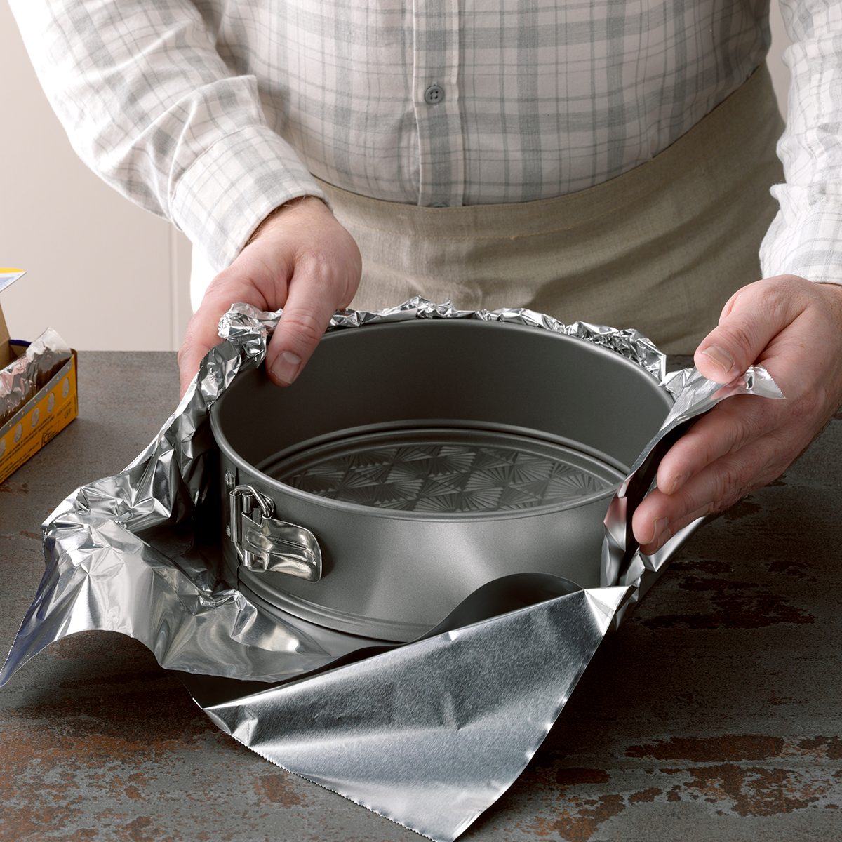 Even if the recipe doesn’t mention using a water bath, use one! Our Test Kitchen uses water baths for every single cheesecake recipe. A water bath is just a pan of hot water that you set your cheesecake pan into. The hot water helps bake the cake more evenly and provides a humid environment for the cheesecake which helps prevent cracks.