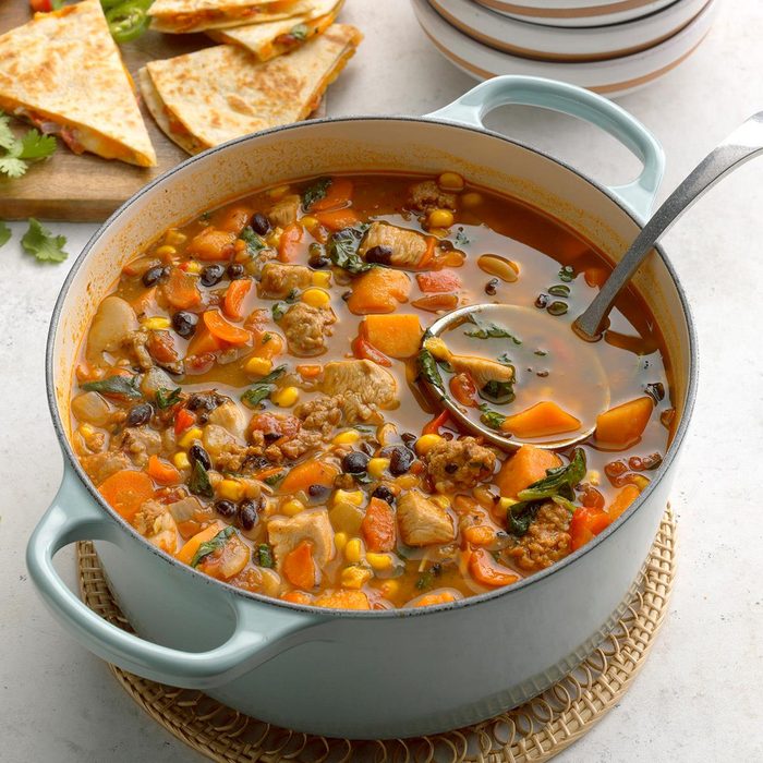 A hearty soup made from scratch is the perfect antidote for chilly weather. Save leftovers for weekday lunches sent to work in a Thermos or quickly reheated in the microwave. —Taste of Home Test Kitchen