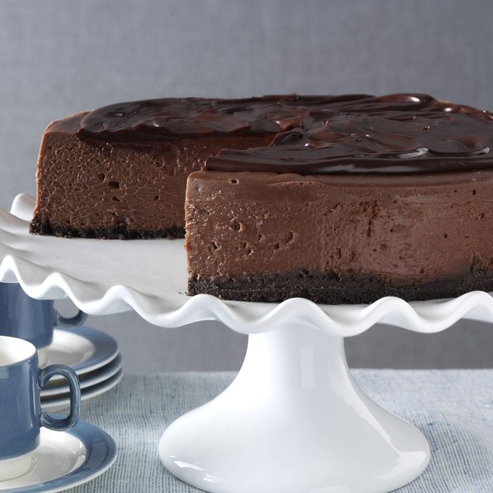 From the Recipe Creator: If you delight in the taste of chocolate, then this is the cheesecake for you. Every creamy bite melts in your mouth. It’s so impressive yet not difficult to prepare—I whip up this dessert each time I want a yummy treat for my family, friends or co-workers. —Mary Jones, Cumberland, Maine
