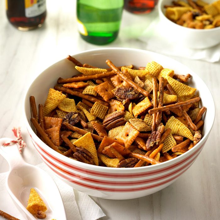 Rudolph and his pals will be dashing, dancing and prancing to gobble up this savory snack mix. Humans also will enjoy the buttery, perfectly seasoned and wonderfully crunchy combination. —Taste of Home Test Kitchen