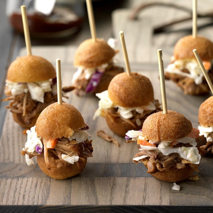 I love coating chicken in pecans instead of breadcrumbs because it gives you such a wonderful crunch and nutty flavor. The sweet berry-bourbon truly pops on these fun sliders—they feel like fancy party fare! —Amy Freeze, Avon Park, Florida