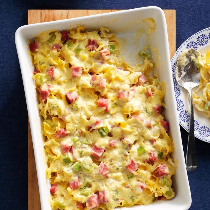 When I prepare this noodle casserole for church gatherings, it's always a hit. It can easily be doubled or tripled for a crowd. —Doris Barb, El Dorado, Kansas