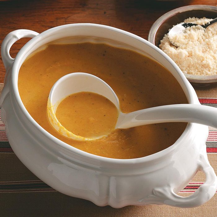 From the Recipe Creator: Here is a great first course! Rich, creamy squash soup with a hint of apple is truly special and worthy of being on your holiday menu. —Holly Wilhelm, Sioux Falls, South Dakota