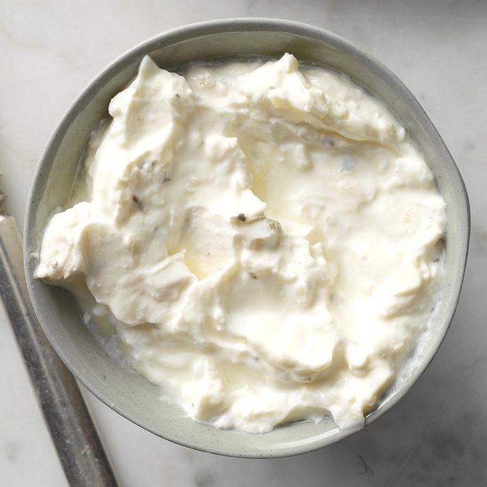 This creamy spread is loaded with oregano, basil, garlic and feta. The flavorful, savory combination is perfect slathered on a toasted bagel. But don’t stop there. Try it as a dip for crunchy breadsticks, too. —Taste of Home Test Kitchen
