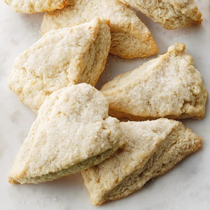 Butter is traditional in scones, but I use coconut oil, which is solid at room temperature and can be cut in like butter. My family enjoys these for brunch on Sundays. Stir in a tablespoon of poppy seeds for a fun twist. —Linda Persall, Cullman, Alabama