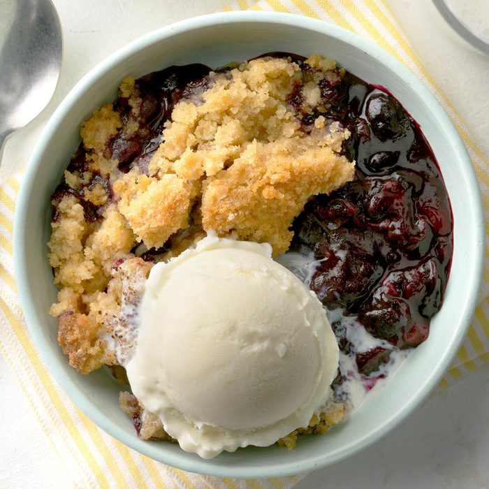 I found this strawberry rhubarb crisp recipe on a box of Quaker Oats about 20 years ago. It’s quick and easier to make than pie. It’s versatile, too, because you can add strawberries in spring or apples in fall. I usually pop it into the oven shortly before we sit down to eat so it’s still warm for dessert! —C.E. Adams, Charlestown, New Hampshire
