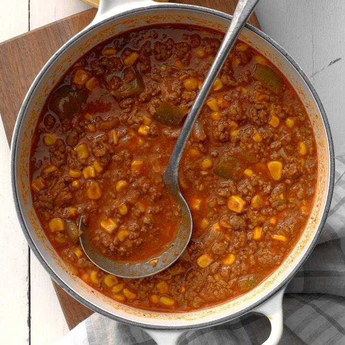 Pack a jar of soup fixin’s plus ground beef and a can of tomatoes, and you’ll have an easy and delicious camping dinner ready to go. —Wendy Taylor, Mason City, Iowa