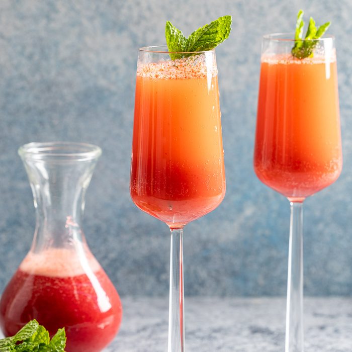 This vibrant mimosa recipe couldn’t be easier to make. Simply blend fresh strawberries with a bit of orange juice, then pour the puree into decorative glasses and top with the best champagne for mimosas (or another sparkling wine). The combo makes an easy springtime refresher and a perfect Easter cocktail.
