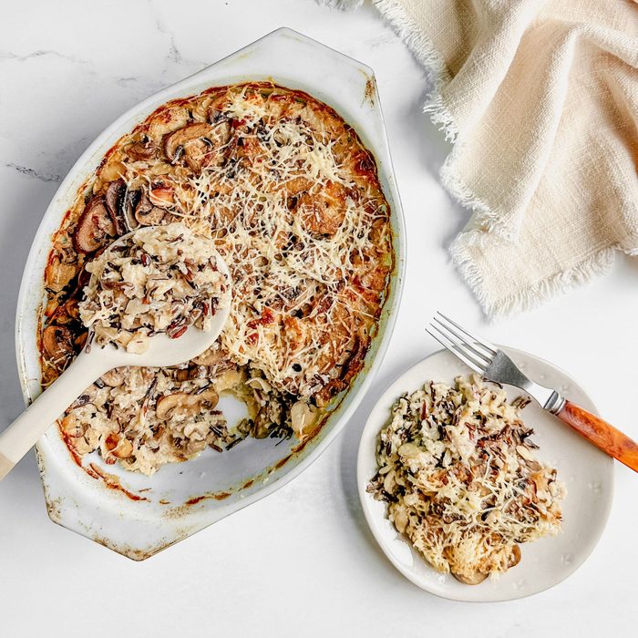 This mushroom casserole hits all the culinary high notes with its rich sauce and cheesy Parmesan crust. It’s a home-style side dish that will have everyone scooping up seconds.