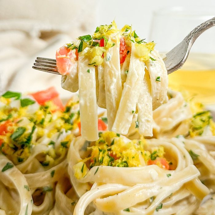 Who says pasta can’t be on the Easter dinner table? With the amount of lemon, parsley and tomatoes in this dish, it’s perfect for springtime.