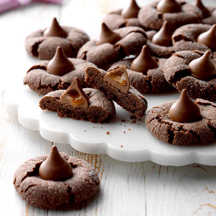 If you’re a fan of peanut butter blossoms, then you have to try this new twist: chocolate cookies adorned with caramel-filled milk chocolate kisses. Best of all, they’re ready to eat in just 25 minutes.