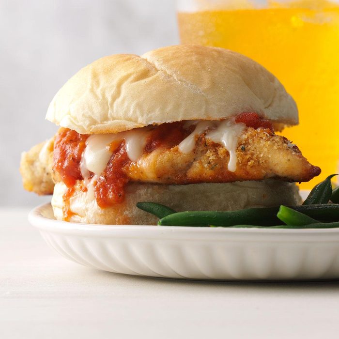 My husband is a big garlic fan, so we use garlic bread crumbs and garlic sauce for our baked chicken sandwiches. They are so comforting on a chilly day. —Bridget Snyder, Syracuse, New York