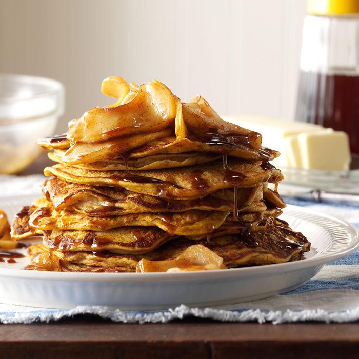 When these pumpkin pancakes are on the griddle, people flock to the kitchen. Grab a spoon and top each stack with buttery, cinnamon-spiced apples. —Kami Button, Cheektowaga, New York