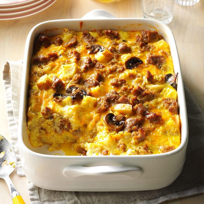 Here's a breakfast casserole that is very easy on the cook. I can make it the night before and it's ready in the morning. It's the perfect recipe when I have weekend guests. —Ella Stutheit, Las Vegas, Nevada