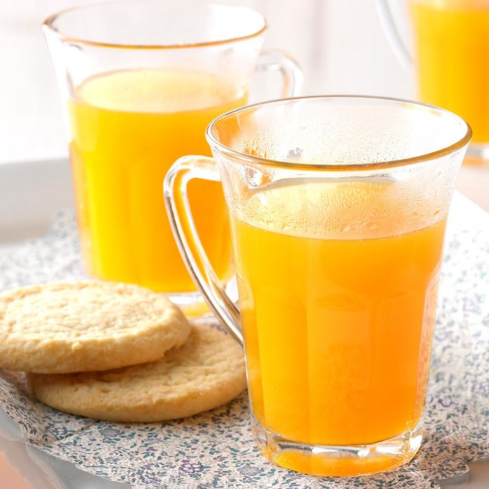 From the Recipe Creator: Warm up a chilly winter morning by serving cups of this hot, fruity tea. It’s wonderful with scones, muffins or other breakfast treats. —Mary Houchin, Lebanon, Illinois