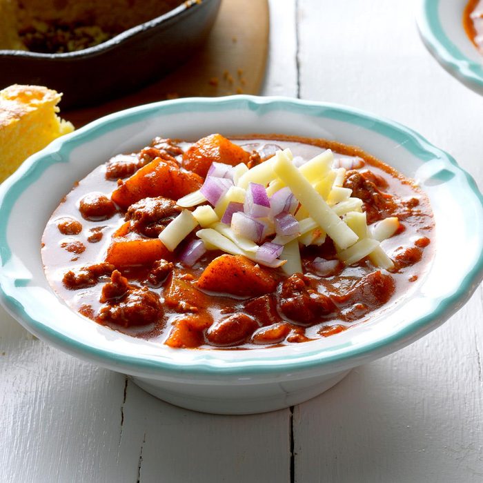 This full-flavored, medium-hot, Texas-style chili tastes even better the second day. —Michelle Smith, Running Springs, California
