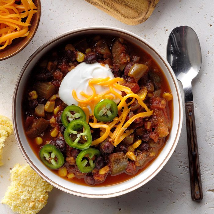 Vegetarian skillet chili screams comfort food to me. This recipe makes me feel warm and fuzzy, and it's loved by both my vegetarian and non-vegetarian friends. —Casey Hill, London, United Kingdom