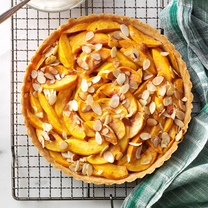 This tart recipe is a great way to showcase beautifully ripe summer peaches. The shortbread crust can be made ahead of time. Once filled with peaches, bake until they’re soft and bubbly and ready for a dollop of whipped cream.