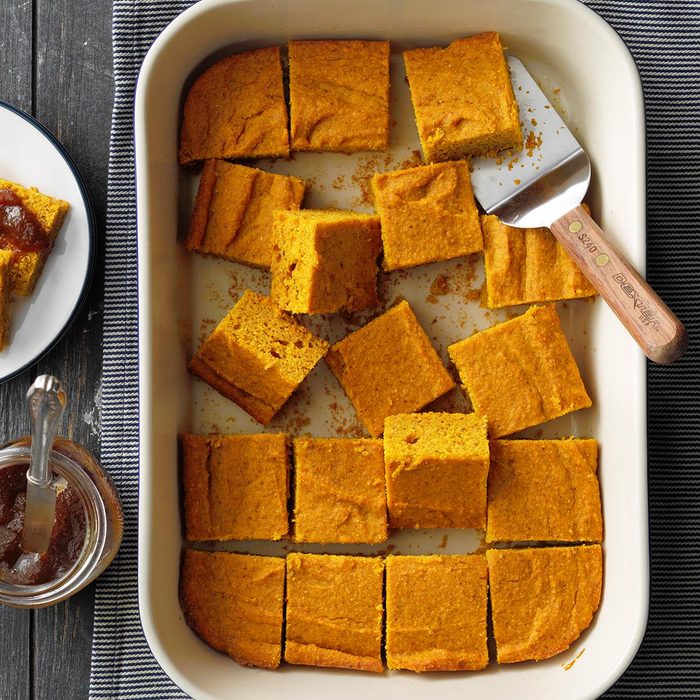 My two young children love this buttercup yellow bread. Squash makes the Halloween baked good moist and goes so well with the cinnamon. This will be a welcome addition to a brunch or dinner table.—Misty Thompson, Gaylesville, Alabama