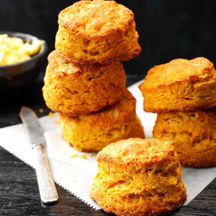 I got smart and started making double batches of these moist, fluffy biscuits to meet the demand. My dad loves their pumpkiny goodness and requests them for Christmas, Father’s Day and his birthday. —Liza Taylor, Seattle, Washington