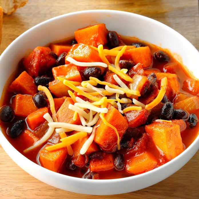 From the Recipe Creator: My whole family enjoys this sweet potato black bean chili, but my daughter especially loves it. I like to make it because it’s so easy and very flavorful. —Joy Pendley, Ortonville, Michigan