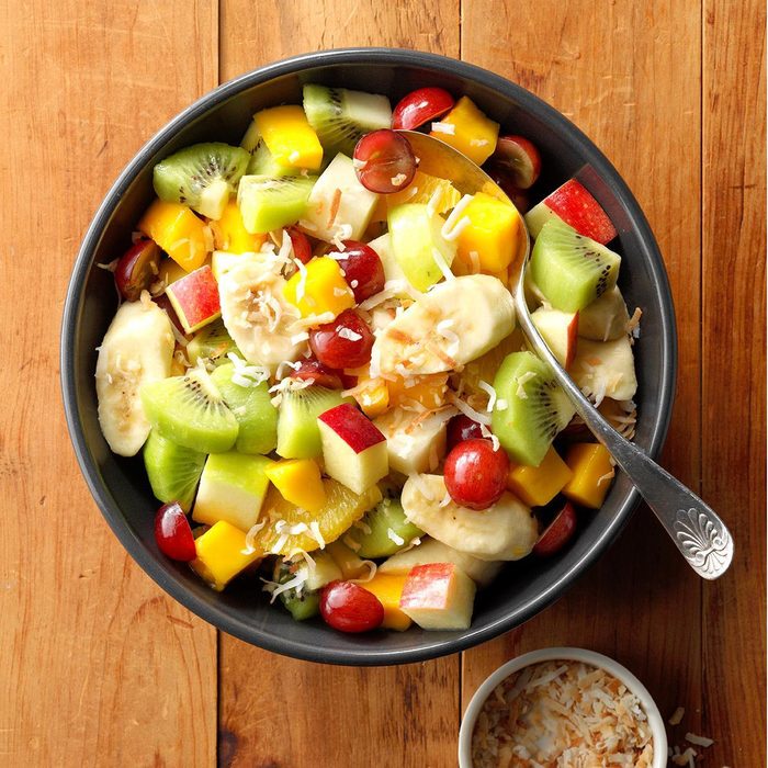 Add a serving of fruit to breakfast with this delicious medley. Toasted coconut, mango and more bring the flavor of the tropics to any menu. —Katie Covington, Blacksburg, South Carolina