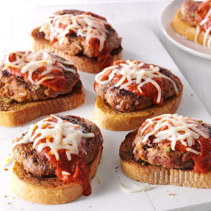 From the Recipe Creator: Craving both beef and pizza? These patties feature both in an open-faced sandwich. And they're lighter than you'd think! —Barbara Schindler, Napoleon, Ohio