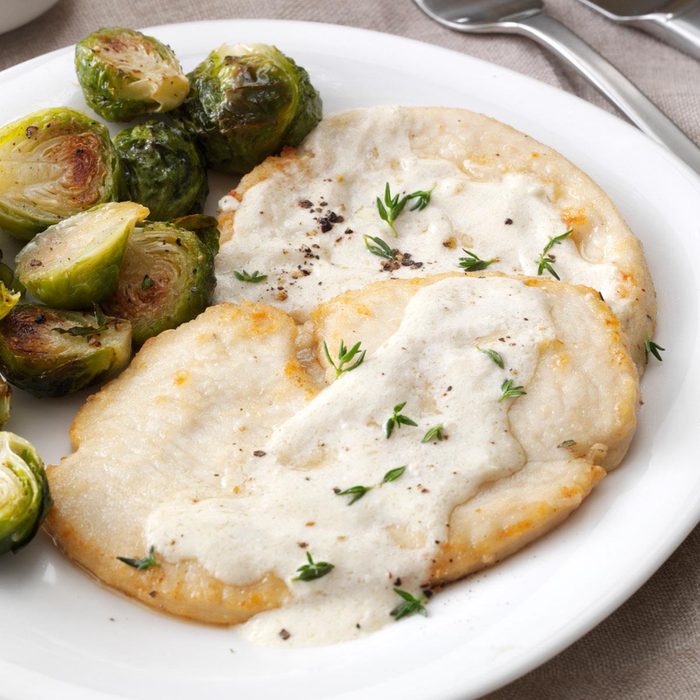 It looks impressive, but this mouthwatering chicken and mushroom sauce comes together in no time. I think its flavor rivals that of many full-fat entrees found in fancy restaurants. —Jennifer Pemberton, Muncie, Indiana